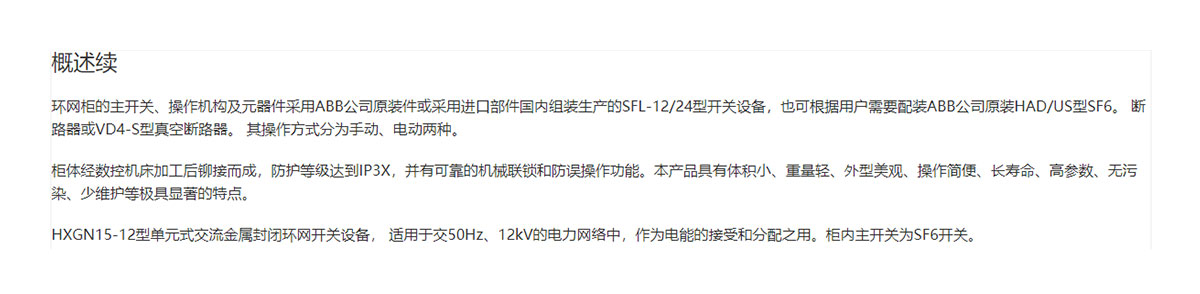 HXGN15-12型單元式交流金屬封閉環網開關設備 (以下簡稱環網柜) 是我們在引進國外技術并按照國內農電及城網改造之要求而自行設計、研制成功的新一代高壓電器產品。各項技術性能指標全IEC62271-200:2003和GB3906標準。